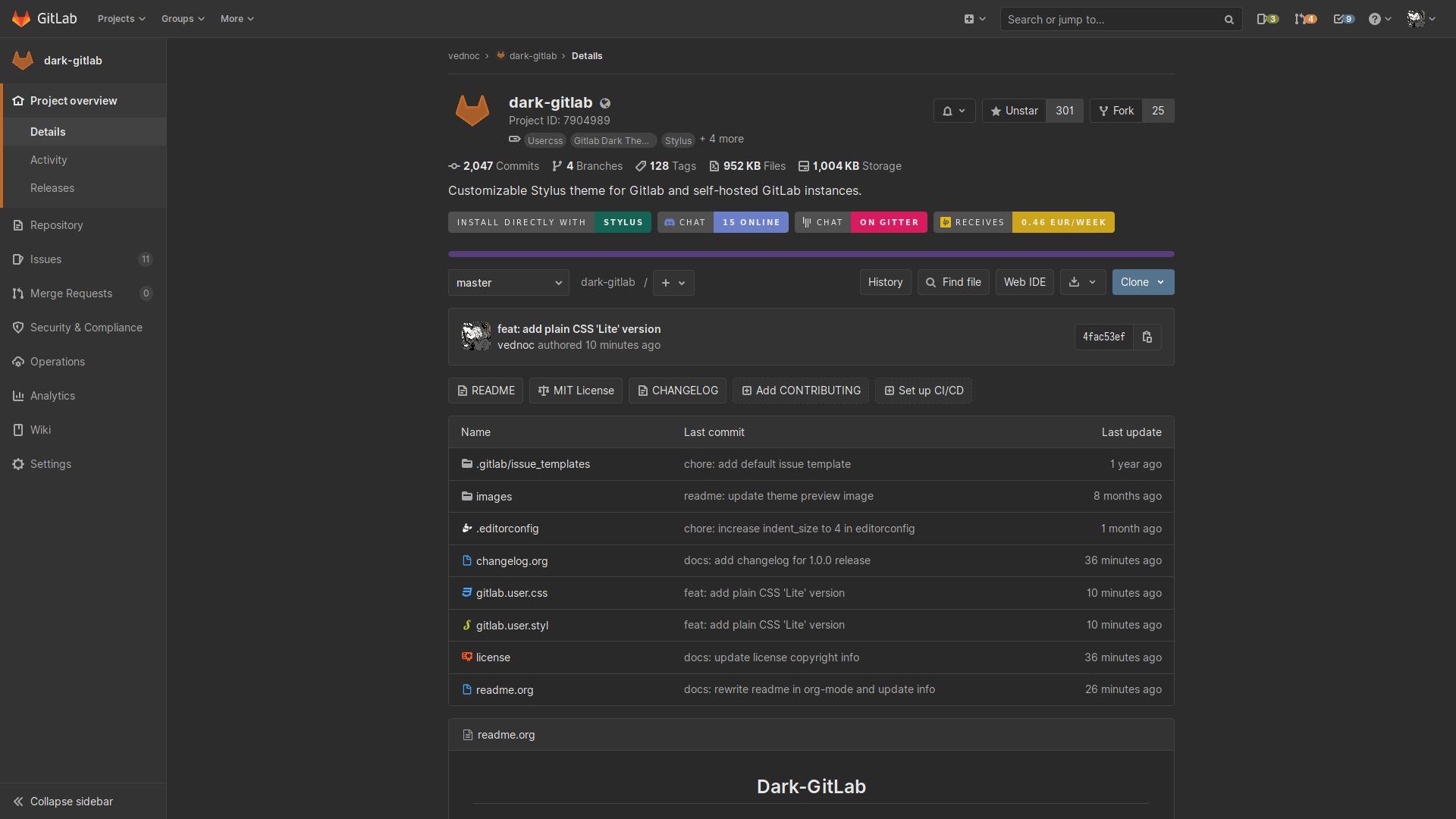 Opinionated, customizable, dark and light mode implementation for GitLab and self-hosted GitLab instances.