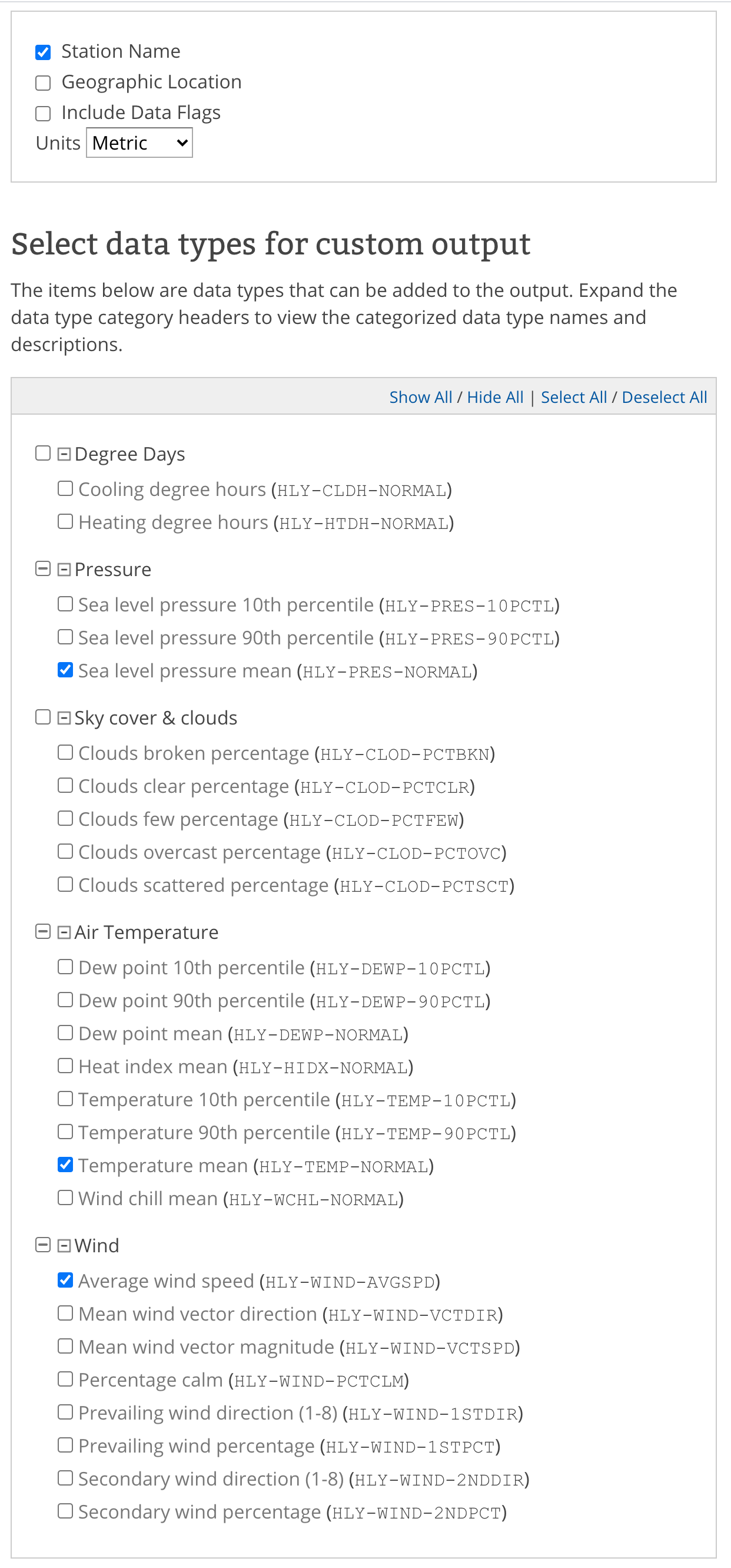 I just downloaded the data from NOAA. The docs are at https://www1.ncdc.noaa.gov/pub/data/cdo/documentation/NORMAL_HLY_documentation.pdf. The docs say the data has average daily minimal temperatures for 30 years ending 2010. I used metric units, yes. |