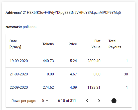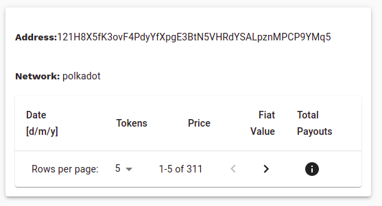 - The output table for the individual payouts does not work properly. For example, the first page for “rows per page =5” is empty, when you click on the right arrow it shows you 3 rows.