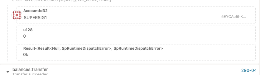 Btw, I'm trying to execute proposals that will success (transfer x < supersig balance) and not (>).