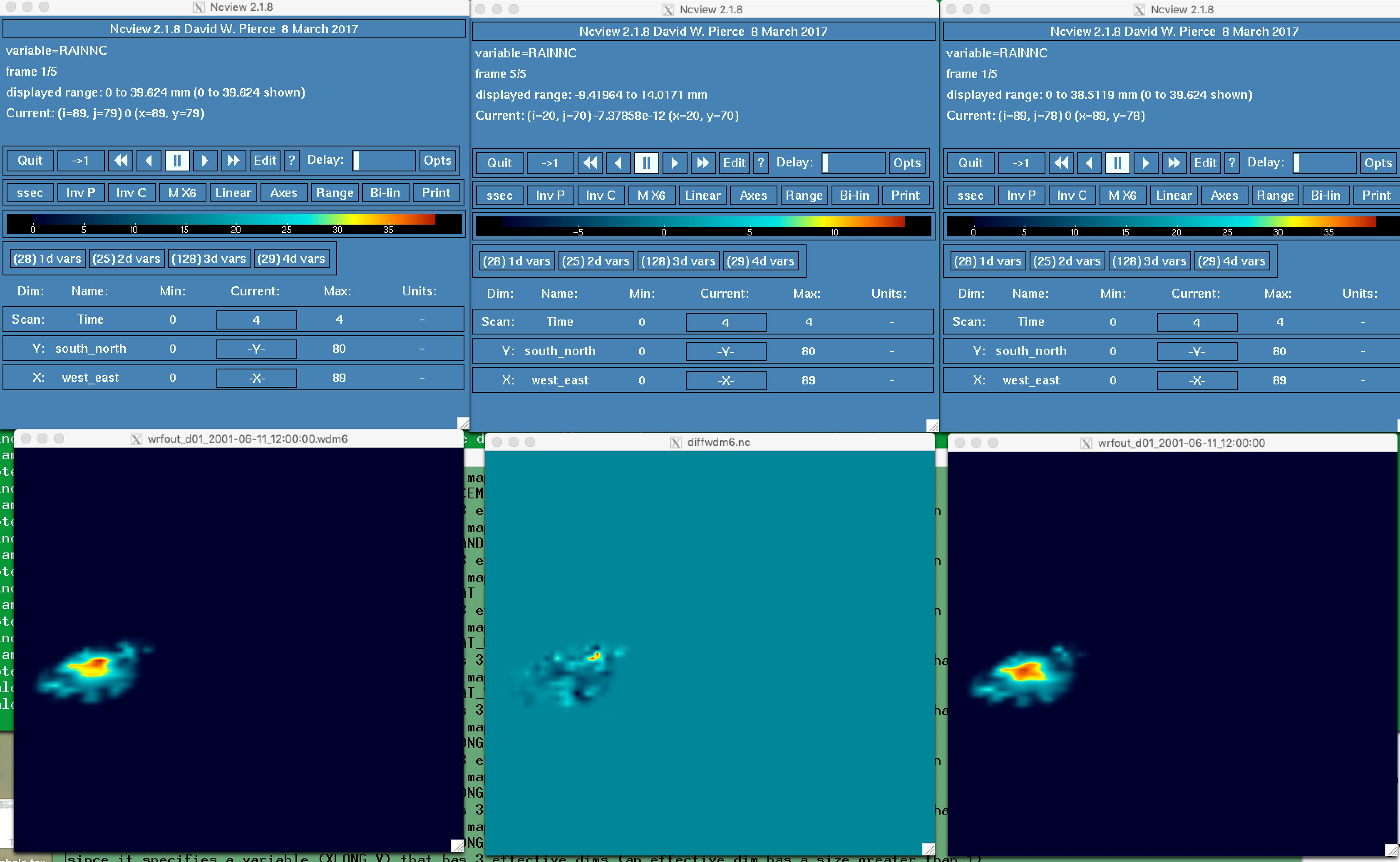 WDM6 tested versus master. Diffs small for surface fields including rainfall after 12 hrs of June 2001 test case (shown).