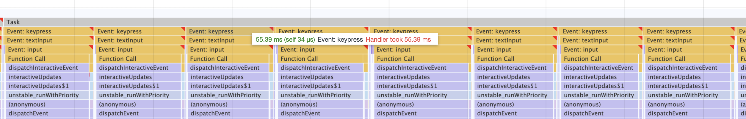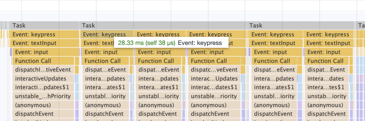 lens/filter-bar. One keypress takes ~55msThis is the flame chart for