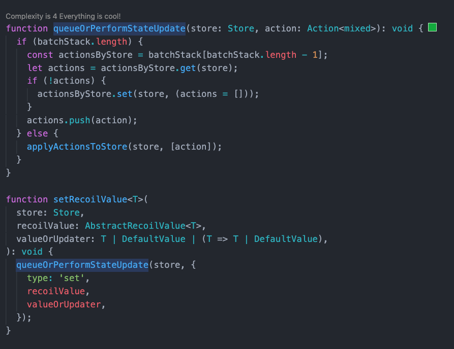 是用于修改 atom 状态的 Hook,它和 useRecoilValue 被集成到了 useRecoilState 里面。它的主要源码在 Recoil_RecoilValueInterface.js 的 setRecoilValue 里面。